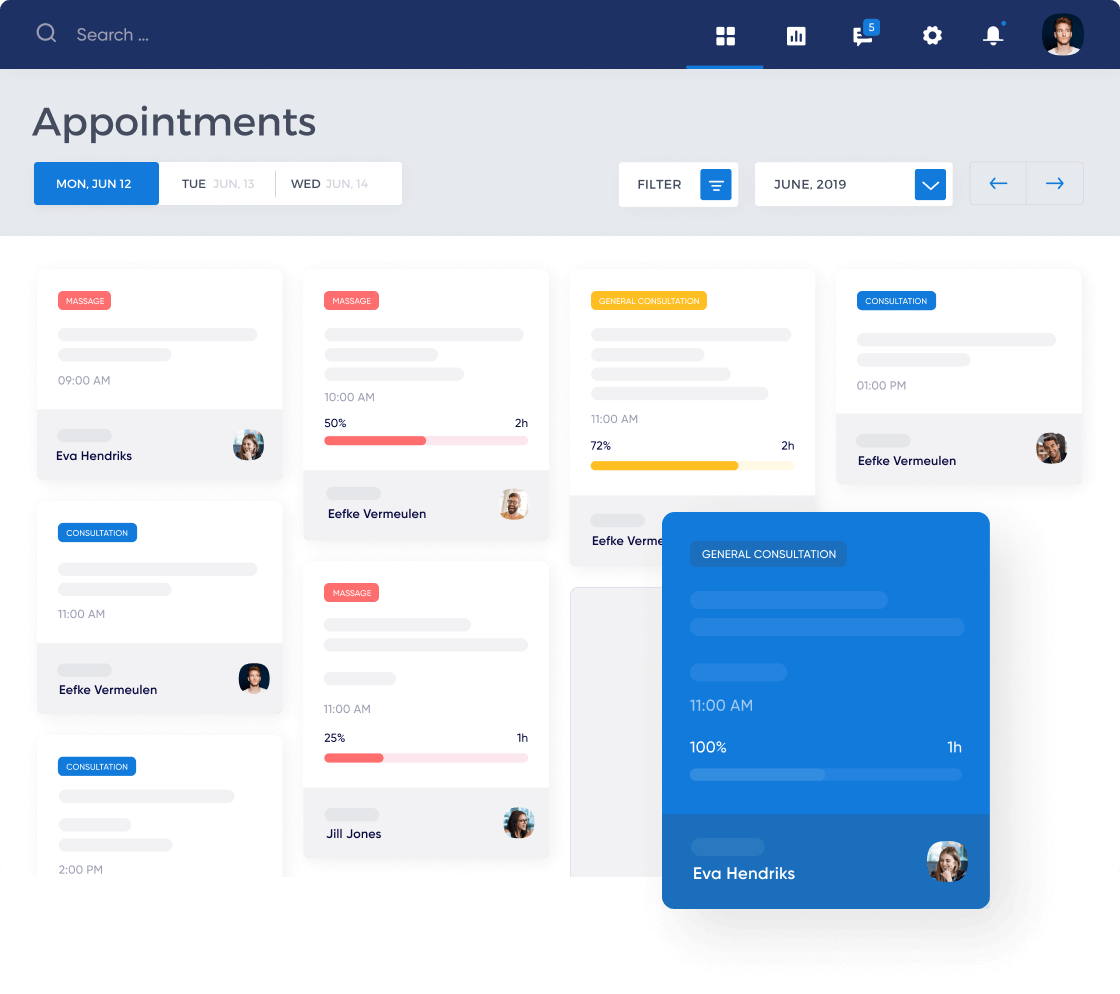 We developed an easy-to-use AJAX-based calendar that showed meetings and treatment plans over an adjustable timescale, such as a day, week, month, or longer. This made it simple to reschedule appointments from one week to the next.