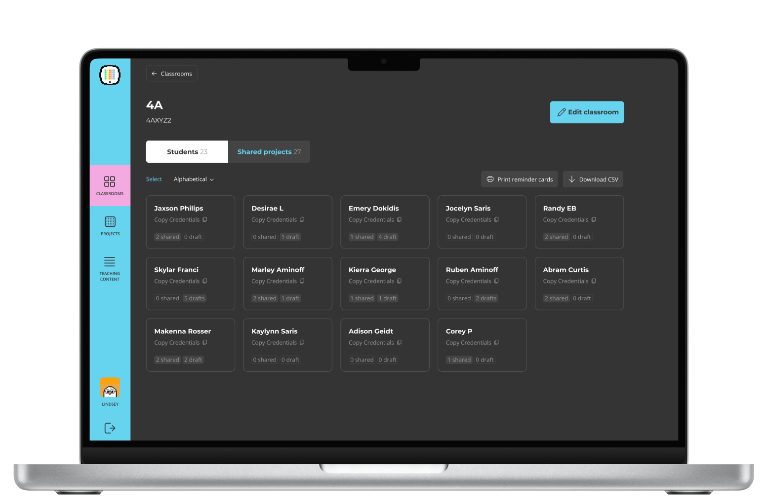 Unique login credentials can be generated and printed directly from the platform, facilitating a seamless transition between online and offline educational settings.
