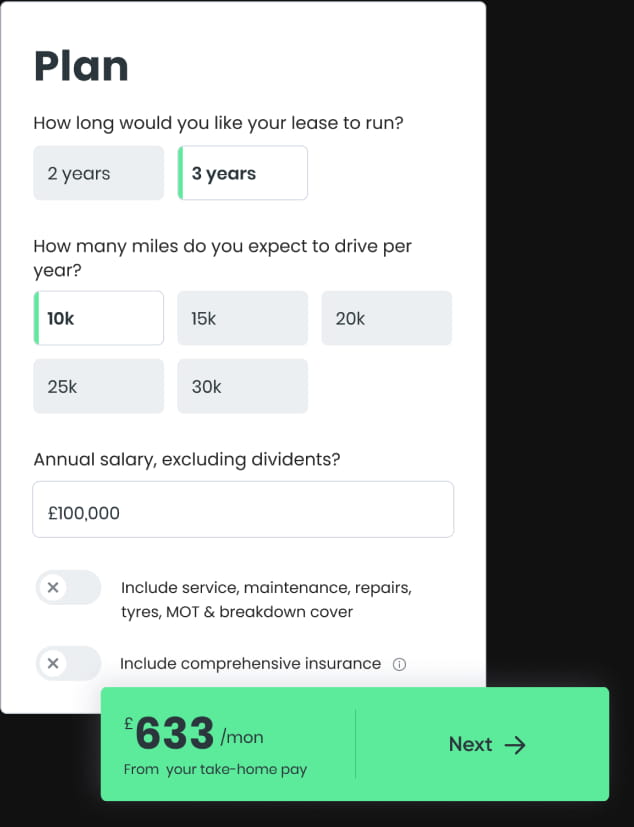 Once the employer confirms their participation, employees enter the platform, select the EV they wish to lease, and enter their salary.