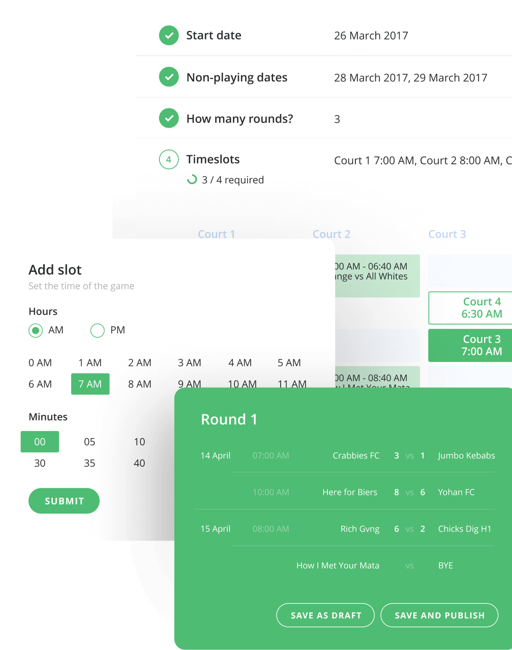 Besides the passion to play soccer, there are three key elements needed to make the game happen: time, team and space.