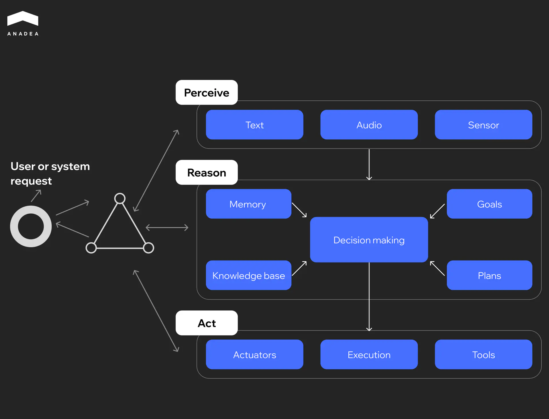- Reason. The use of LLMs and rule-based systems enables AI to interpret context, apply logic, and generate an informed output.