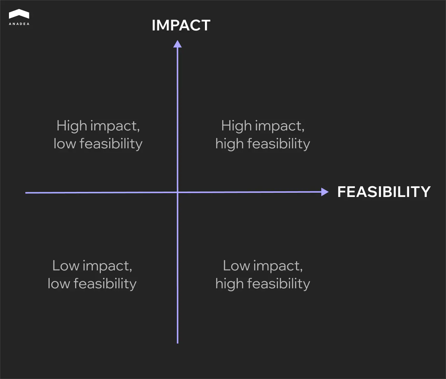 To detect such cases, you can rely on a 2x2 matrix. By identifying the potential impact and the required efforts and visualizing them, you will easily find those opportunities that should be used first.