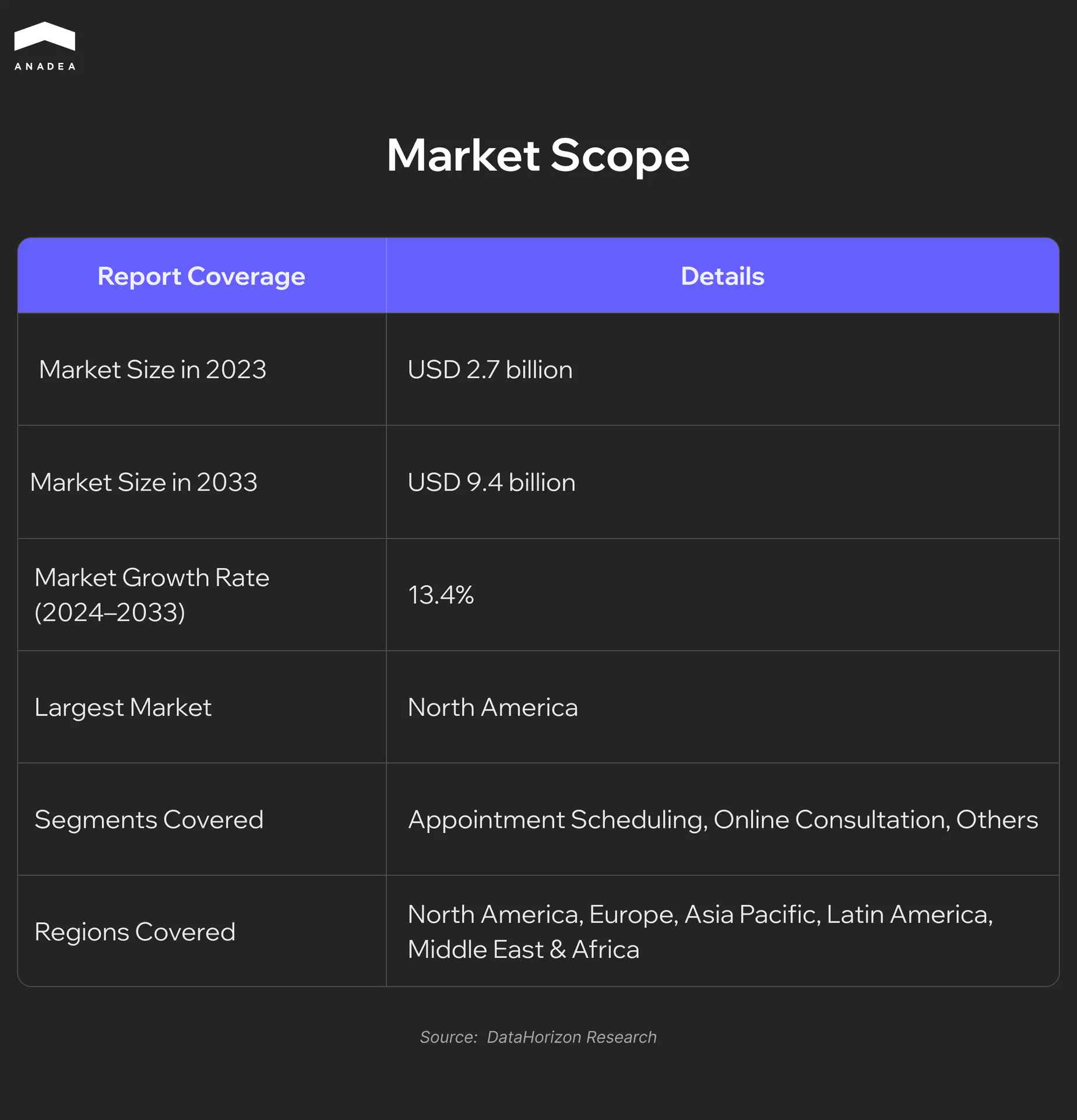 According to DataHorizon Research, the global doctor booking app market reached $2.7 billion in 2023 – and is projected to hit $9.4 billion by 2033. With an annual growth rate exceeding 13%, this is a compelling case for investing in products that solve specific challenges for medical businesses.