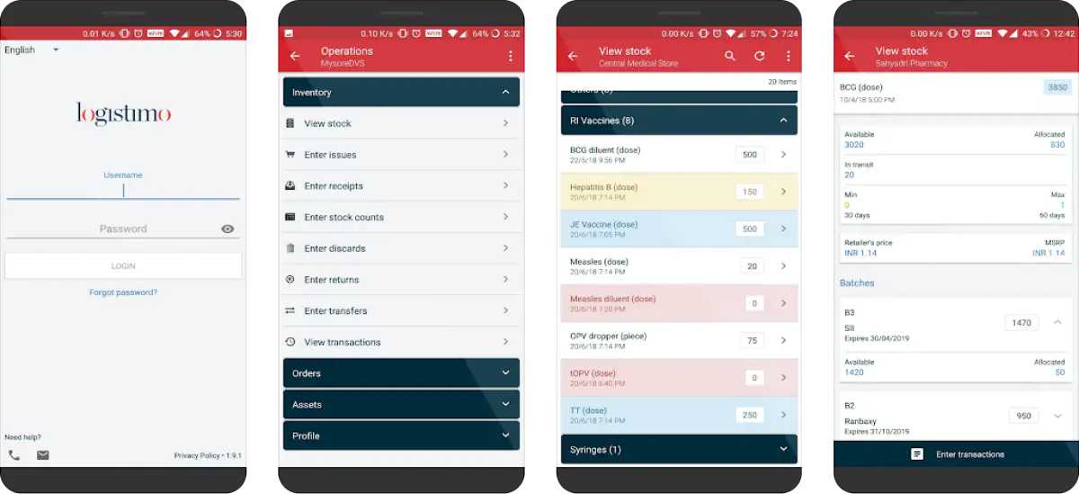 Iota (Logistimo) is one of the apps that can be used to demonstrate the benefits of this type of solution. It helps to manage logistics and supply chain processes in emerging markets. Namely, this app is targeted at all participants of supply chains, including distributors, retailers, and agents but your app can be developed specifically for the needs of your company. This mobile app helps to view real-time data related to inventory and track purchases and sales.