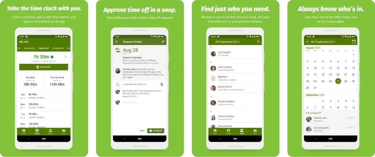 BambooHR is an app that has managed to gain high popularity among small and medium-sized companies. It helps to smartly organize all information about all the employees, track work hours and quickly edit or update any necessary documents. You can consider this app as an example for building your own solution for your enterprise.