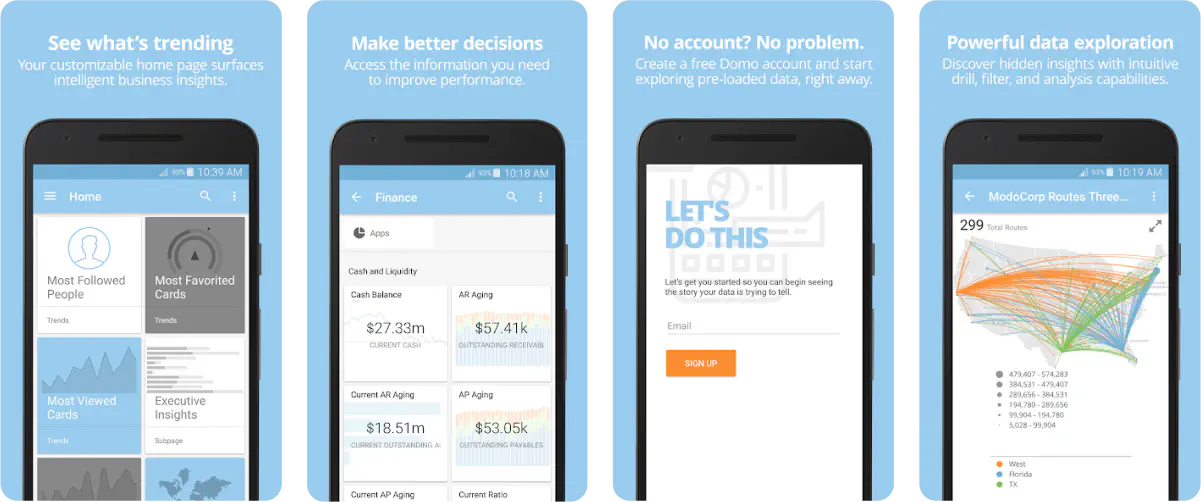 If you want to find out how such apps can be helpful in your business processes, you can have a look at the example of the Domo application. It offers its users much more than traditional static reports. Instead of that, it is possible to get access to real-time data visualization, data analytics, and convenient tools for working with all the reports.