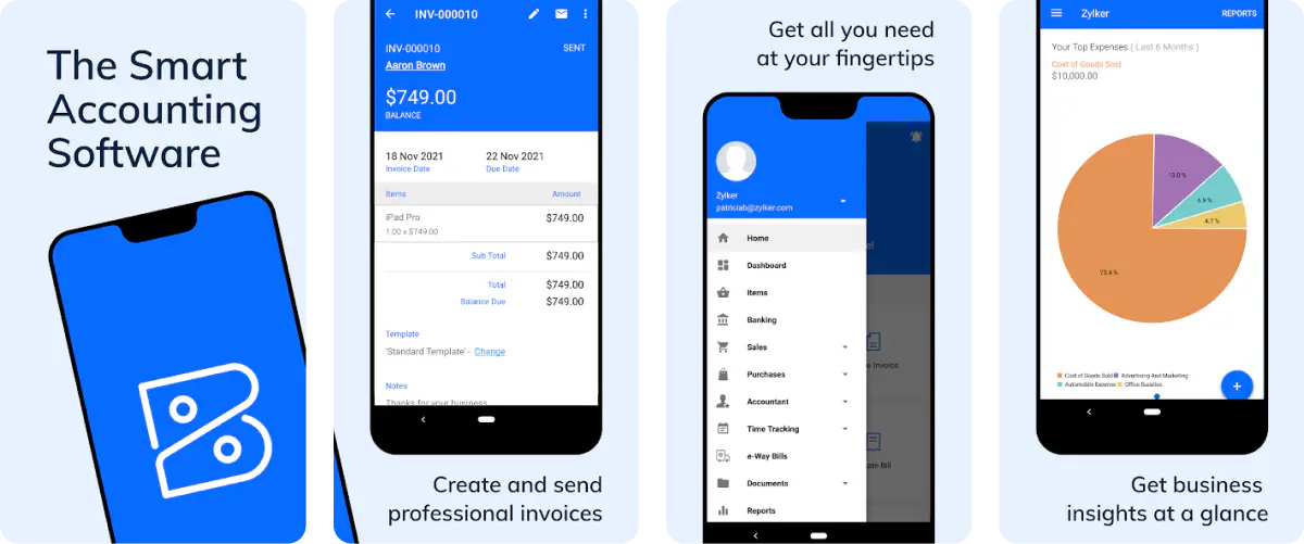 Zoho Books is one of the most well-known and widely used apps for mobile accounting. It helps to keep track of cash flows, monitor spending, check tax compliance, and perform other important accounting tasks.