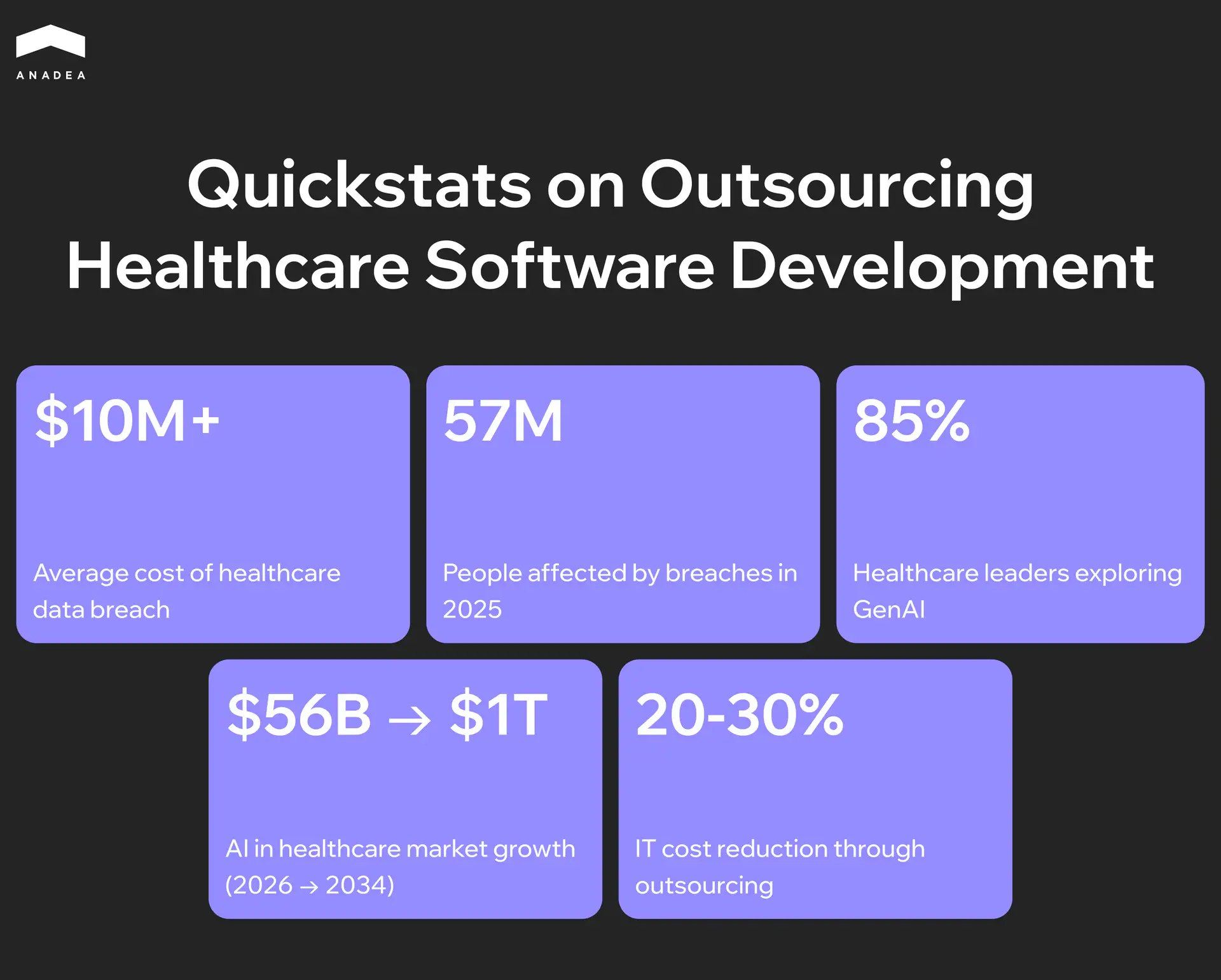 Decades ago, outsourcing began as a simple way to cut operational costs. Today, it has transformed into a high-stakes strategic partnership. Healthcare organizations cooperate with external teams to get the ability to innovate at a high pace required by the modern market. It is not enough to have a functional app. Solutions must now integrate sophisticated AI-powered functionality and adhere to the latest security and interoperability standards. Most in-house teams lack the specialized expertise to address these needs.