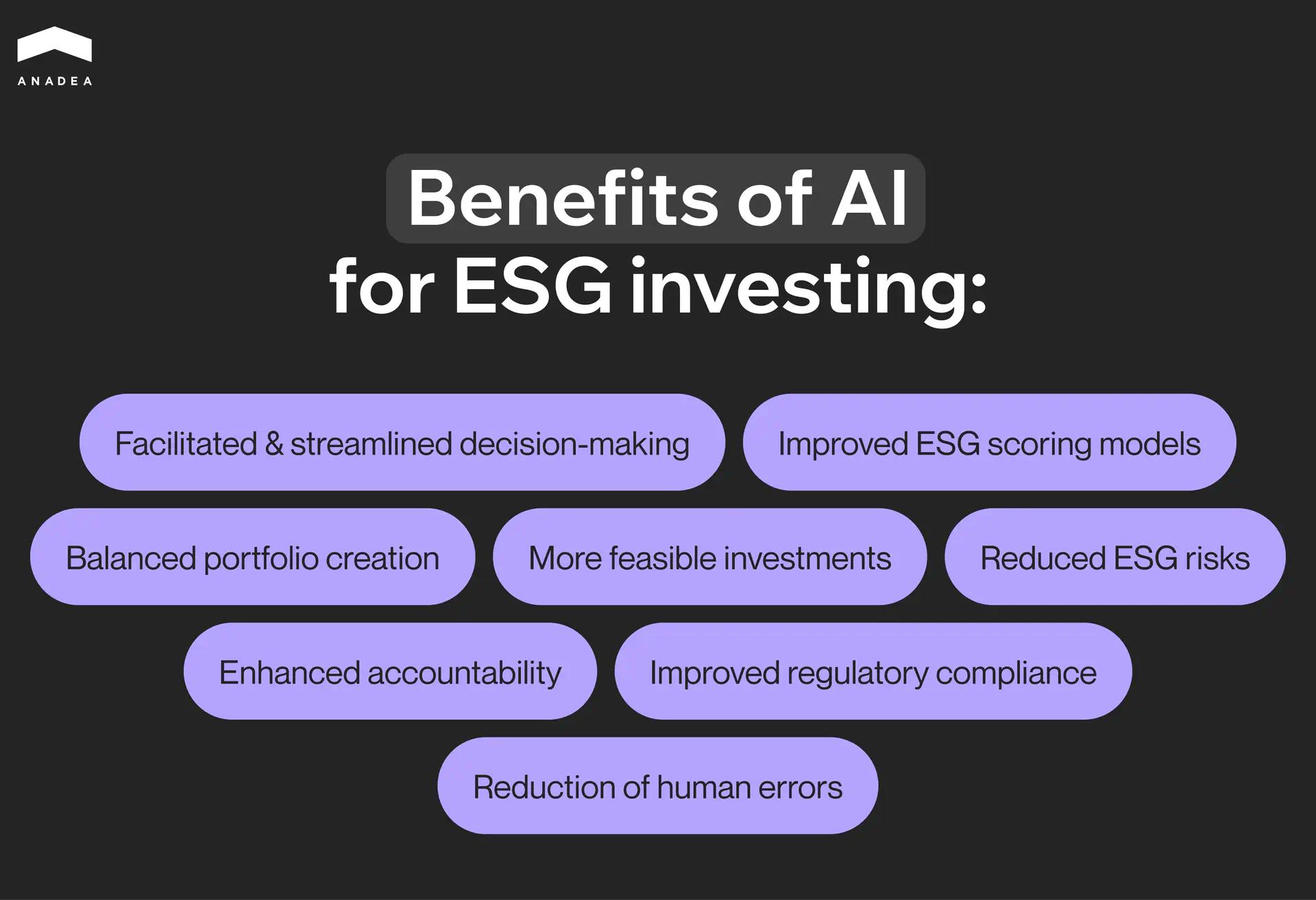 - AI and ESG investing can be a very beneficial combination. With AI, investors can better navigate the complexities of this area. This technology can offer several key advantages for that. It can process vast amounts of data quickly and efficiently and provide predictive insights on the results of its analysis. Thanks to this, it enables more informed decision-making, better risk management, and enhanced efficiency.