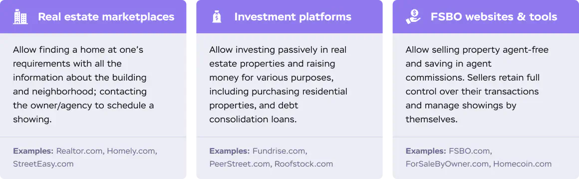 Here and further in the article, we break real estate platforms into the following categories: