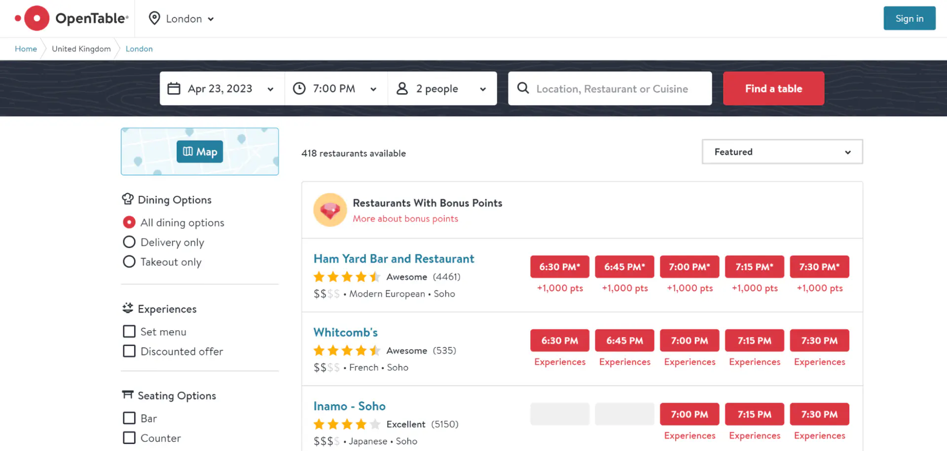 Restaurant reservation