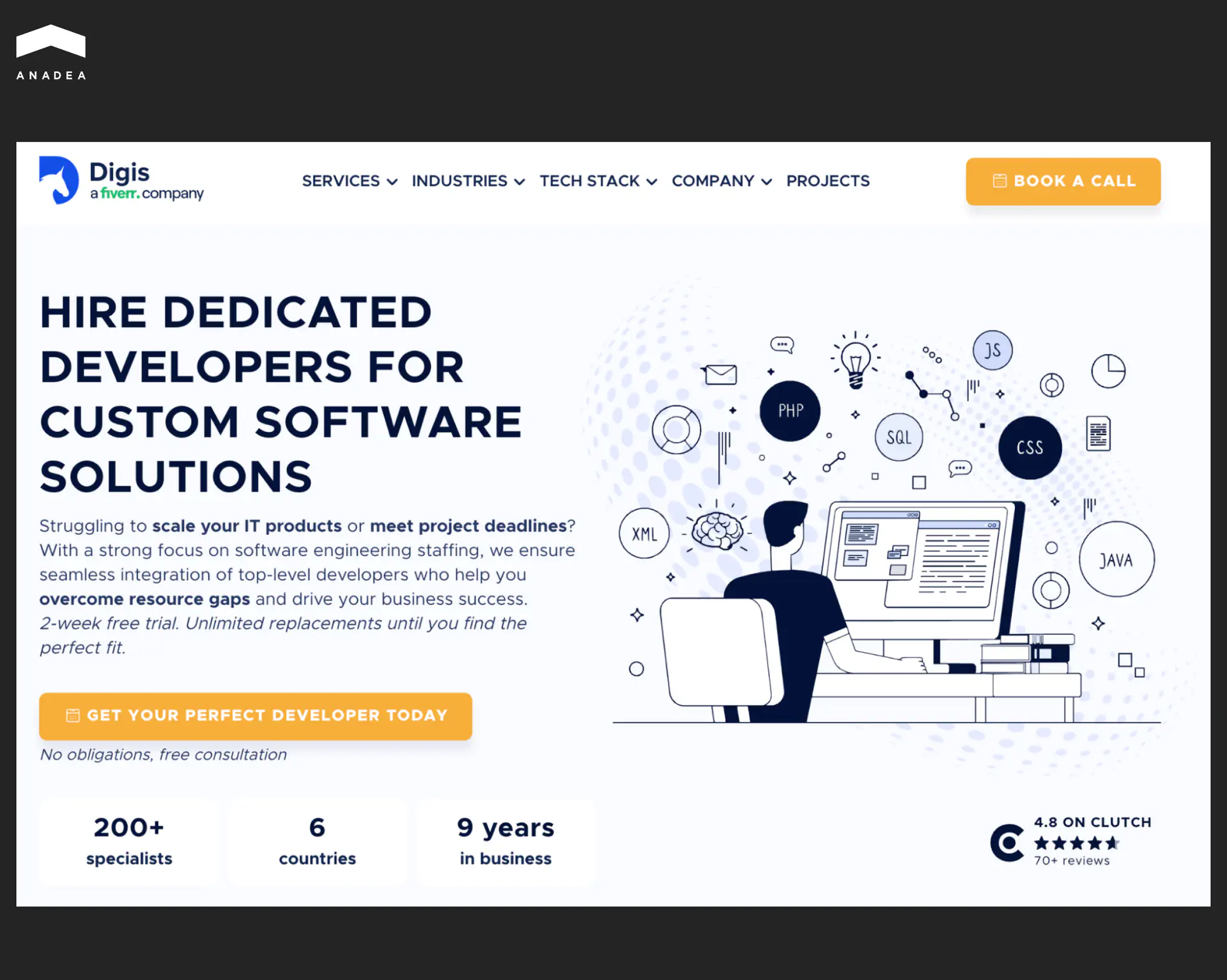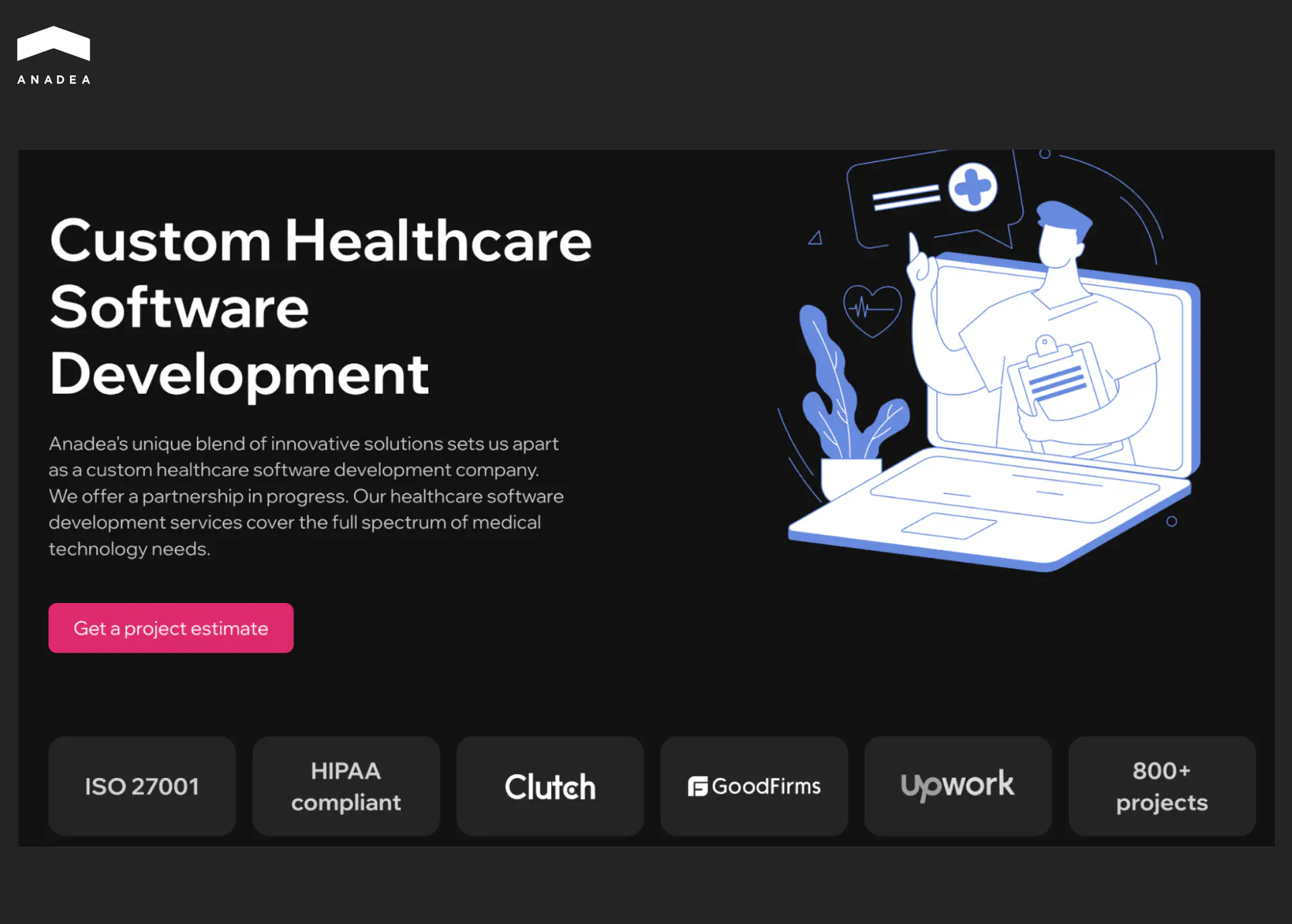Anadea | $25-49/hr | Spain, USA | EHR/EMR, Telemedicine, Custom Healthcare Apps |
