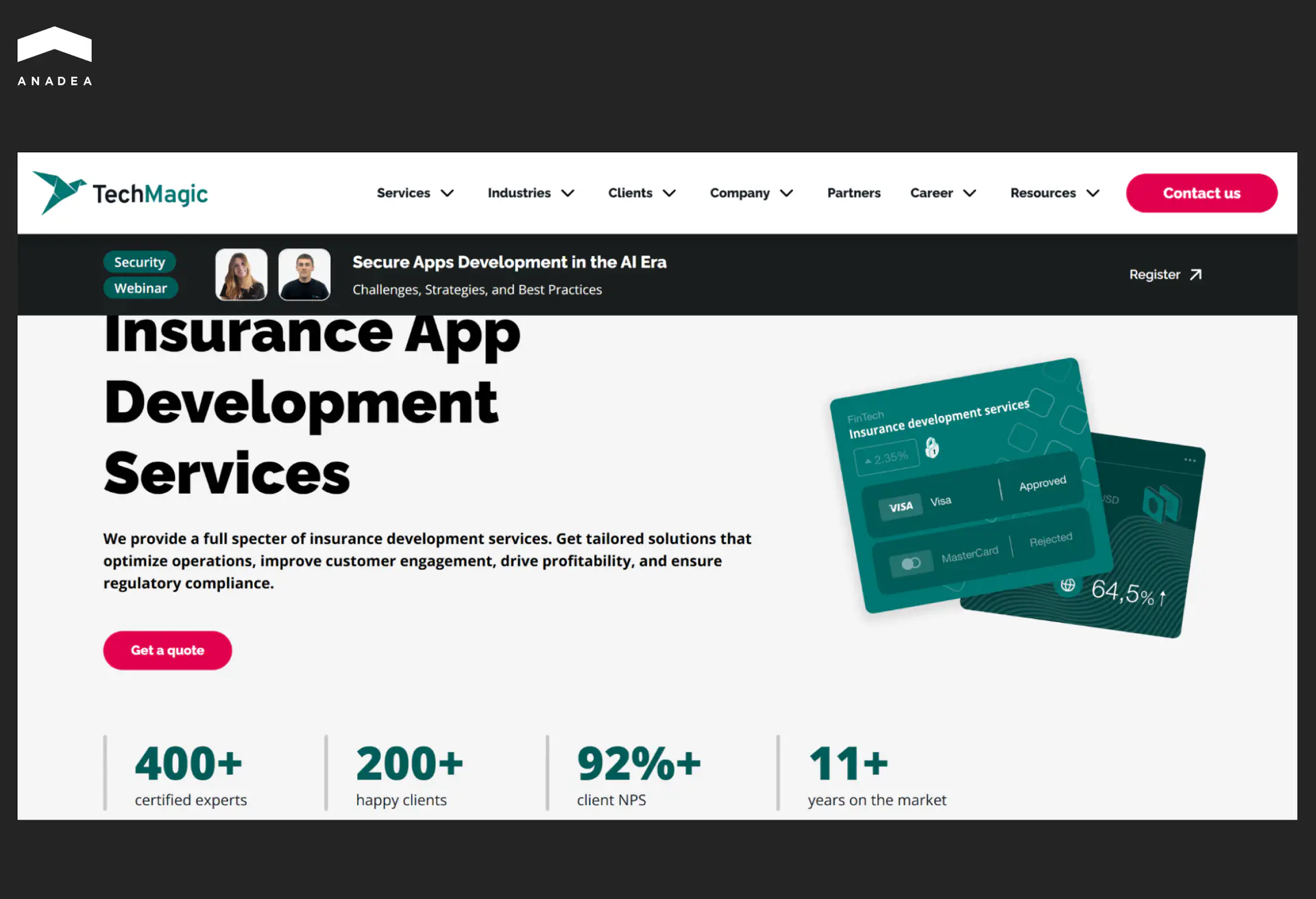 TechMagic is a custom software development company specializing in delivering tailored solutions for the insurance industry. With over 11 years of experience and a team of more than 400 professionals, TechMagic has successfully cooperated with over 200 clients.