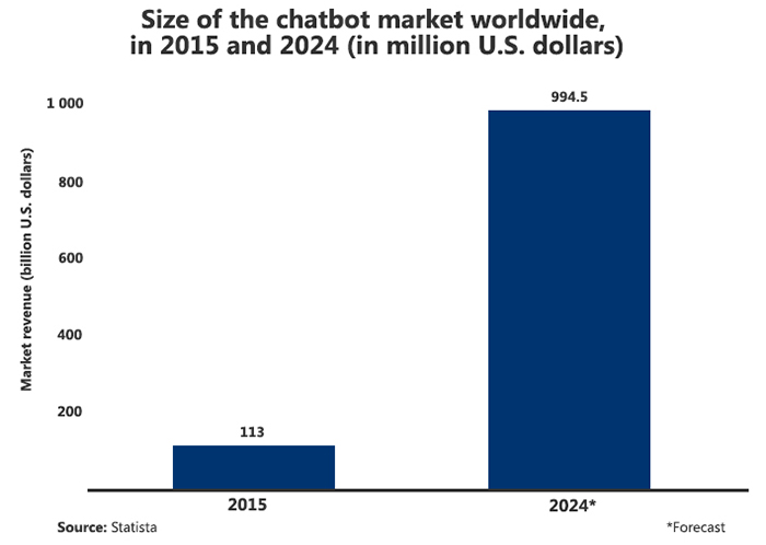 Online chatbots save time and efforts by automating customer support. Gartner forecasts that by 2020, over 85% of customer interactions will be handled without a human. However, the opportunites provided by chatbot systems go far beyond giving responses to customers’ inquiries. They are also used for other business tasks, like collecting information about users, helping to organize meetings and reducing overhead costs. There is no wonder that size of the chatbot market is growing exponentially.
