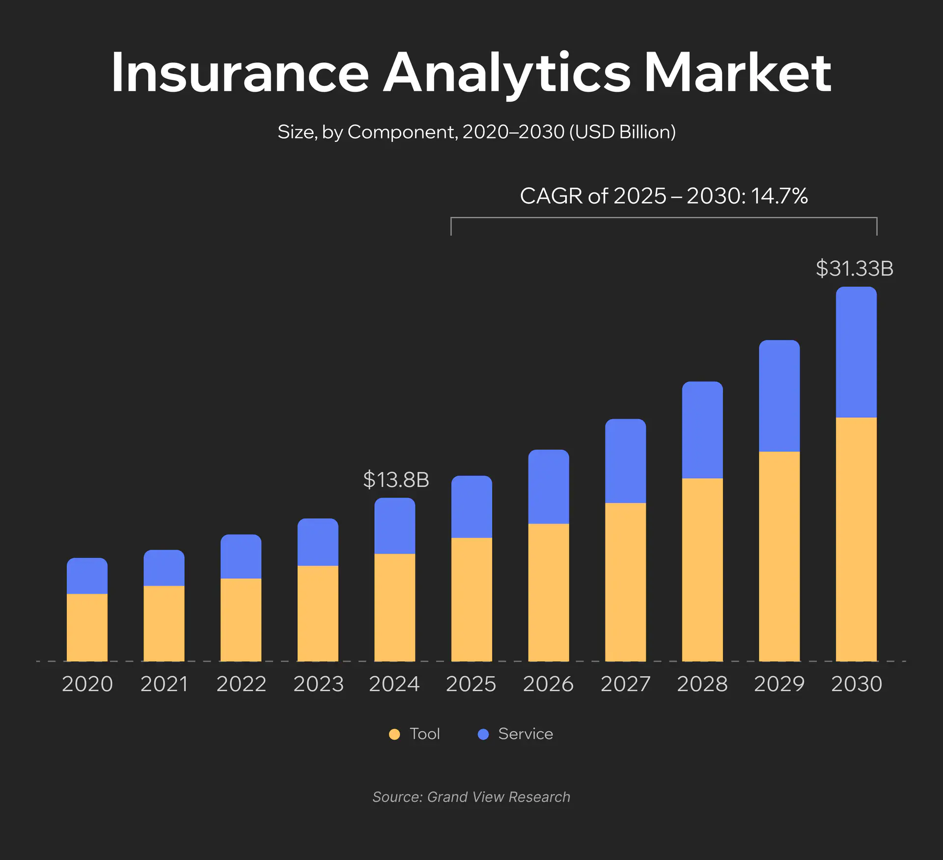 The global insurance analytics market was valued at $13.84 billion in 2024 and is projected to grow to $43.95 billion by 2030 according to Grand View Research. That’s nearly a threefold increase in six years. The reason is simple: insurance companies generate massive amounts of data, but most of it remains unused. Underwriters still rely on outdated actuarial tables, analysts spend weeks preparing reports that become obsolete before publication, and fraudsters adapt faster than companies can respond.
